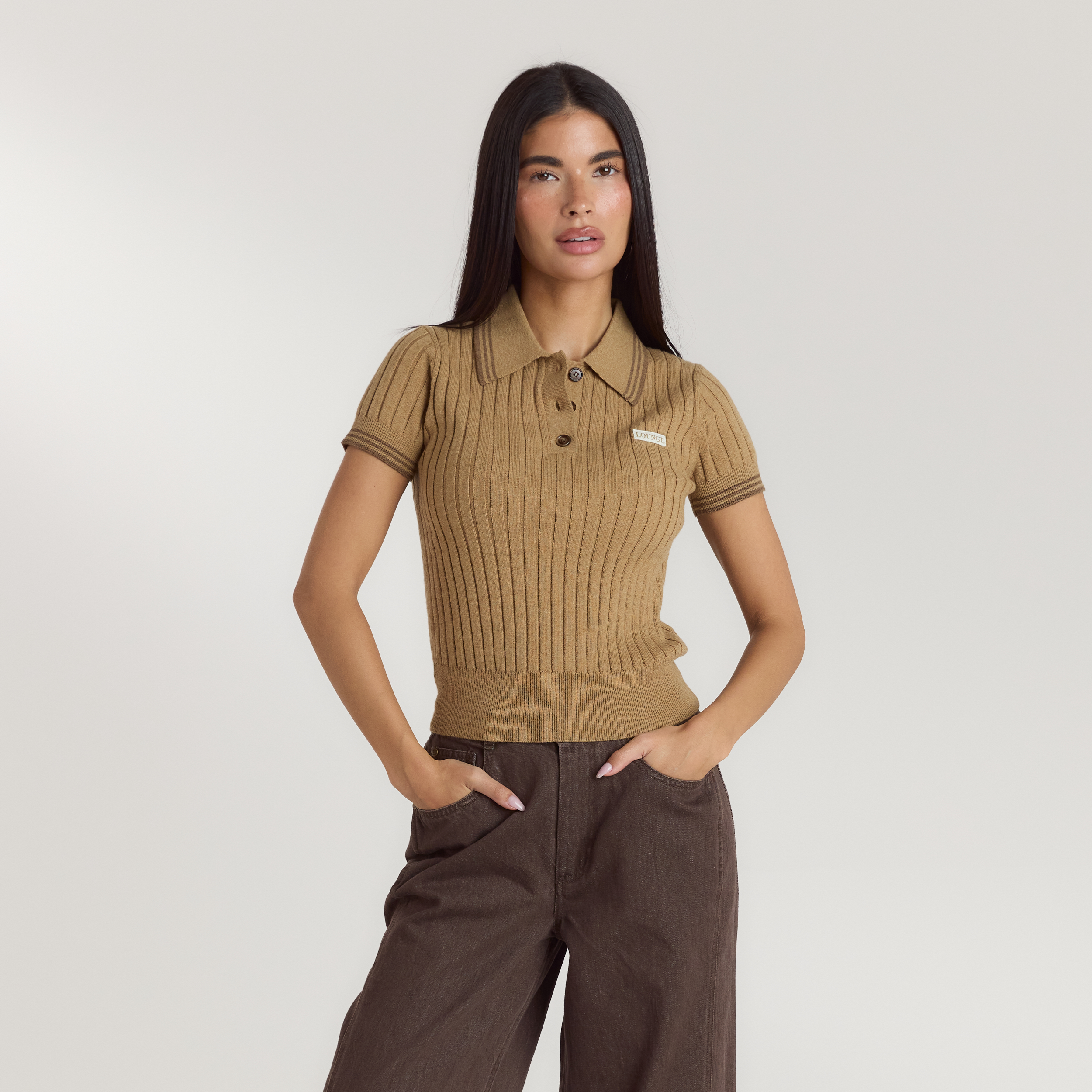 Deze slim-fit polotop is iets korter voor een flatterende pasvorm – en de unieke gestreepte randen en elegante hoornknopen belichamen samen de essentie van ‘verfijnde alledaagsheid’.