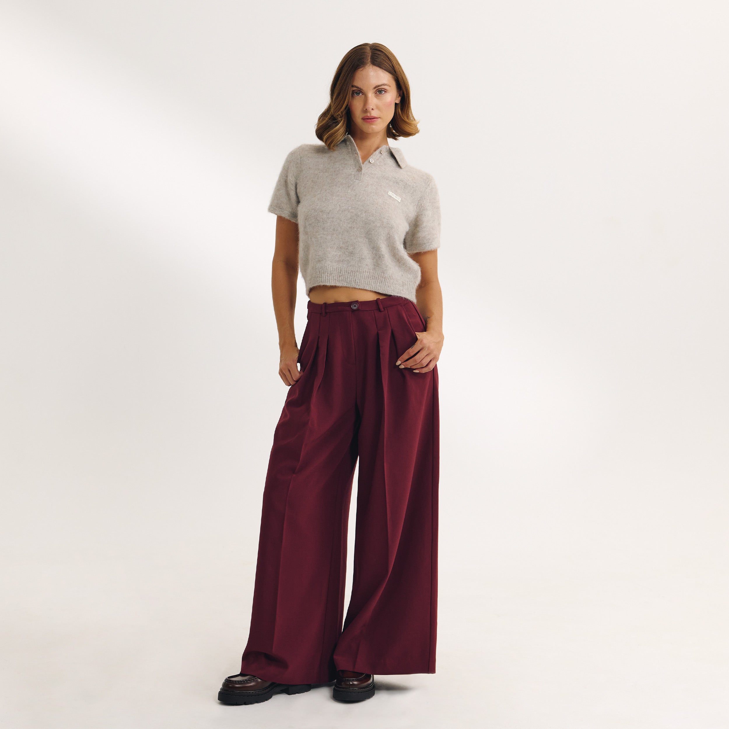 Getailleerde Broek met wijde pijpen - Kersenrood